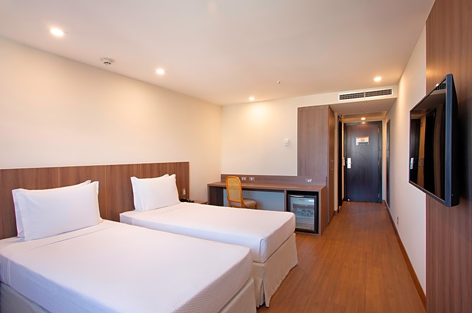 Guests will have a special experience as the twin room offers a pool with a view. Providing free toiletries, this twin room includes a private bathroom with a shower and a hairdryer. The air-conditioned twin room provides a flat-screen TV with cable channels, soundproof walls, a mini-bar, a wardrobe as well as city views. The unit offers 2 beds.